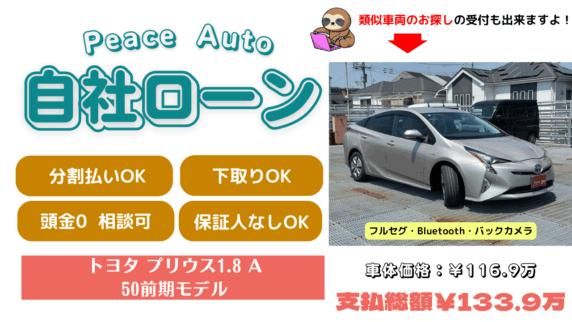 【自社ローン 和泉市】自社ローンで買える50プリウス中古 保証人不要 任意保険込で月々4.5万からOK