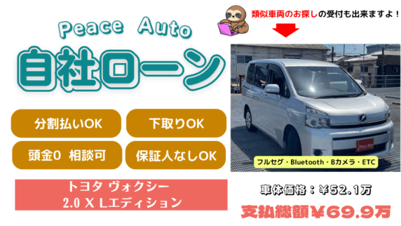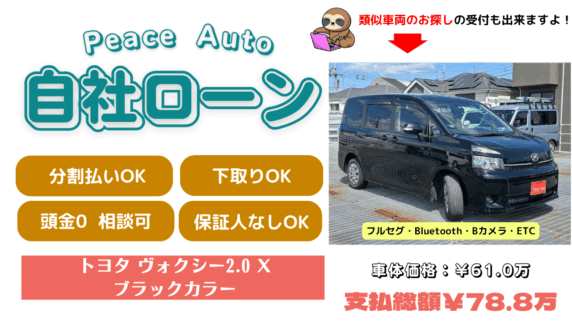 当店の自社ローン 保証人なしで買える中古車は、1番はプリウスがおすすめです。その他には、ミニバン(VOXY、セレナ、ステップワゴン)なども購入しやすいです。