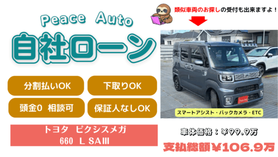 【自社ローン 大阪】令和3年モデル 軽自動車 トヨタ ピクシスメガ660 L SAIII 保証人不要・分割OK