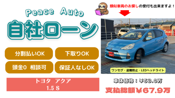 【自社ローン 京都】ローン審査に通らない方でも自社ローンで買える中古アクア 1.5 Sのご紹介!