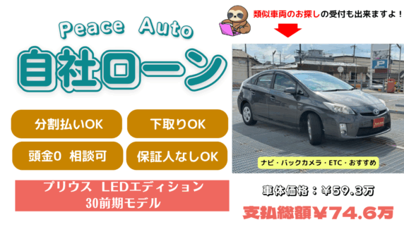 【自社ローン 関西】頭金も保証人も不要 74.6万で買える30プリウス  LEDエディション