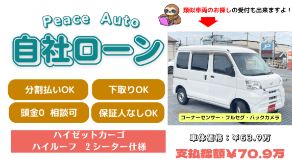 自社ローン専門だから法人・個人事業・自営でもOK!ハイゼットカーゴ中古が最安で買えます!