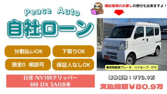 【自社ローン 寝屋川】配送車・作業車で活躍の日産 中古車クリッパー!自営業・個人事業の方でも自社ローン歓迎!