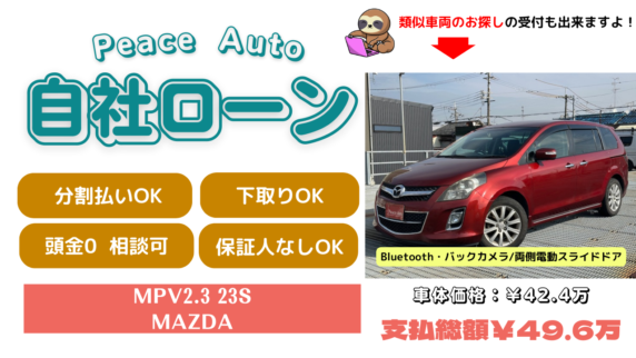 【自社ローン 大阪】中古車 マツダ MPV 2.3 23S 頭金 保証人不要 月々1.5万OK!48回払いも可能