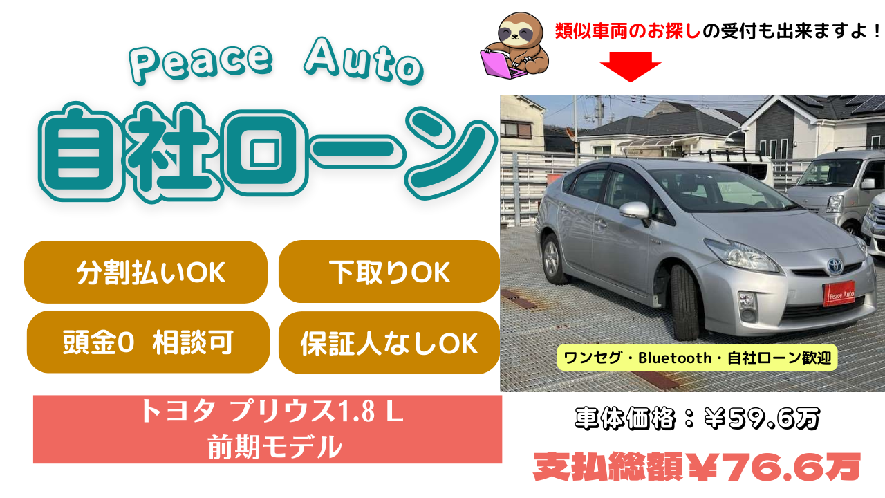 | 中古車 トヨタ プリウス1.8 L 年式:2010(H22) 総支払額:76.6万 月々支払い額:23,000~25,000 (2025年3月までの平均的な統計) 走行距離数:6.1万km 補足:頭金=9,000円の場合 実質年率:6% 初回お支払:24,058円 月々お支払:23,000円 総支払回数:36回 支払回数:最大60回までOK ※月々のお支払い額やお支払い回数のご相談も承ります (頭金の金額で月々のお支払い額は変動します) 寝屋川市 自社ローン 大阪 ピースオート ![]() |
