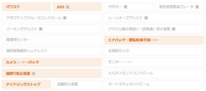 ▼ 装備仕様 提供:カーセンサー